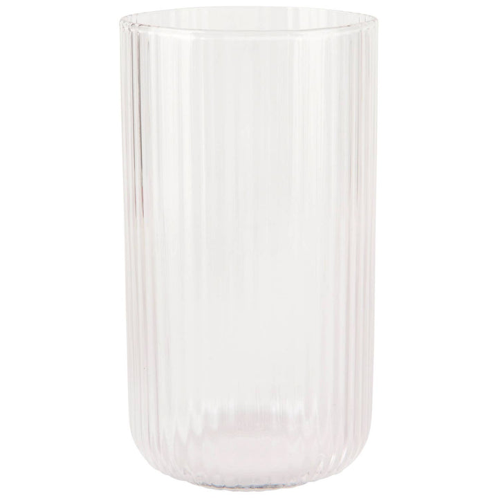Drink in the delicate ridges and crystal tones of this modern tall tumbler. Part of the fluted glassware collection, this Clear tumbler is handblown with a ripple effect.