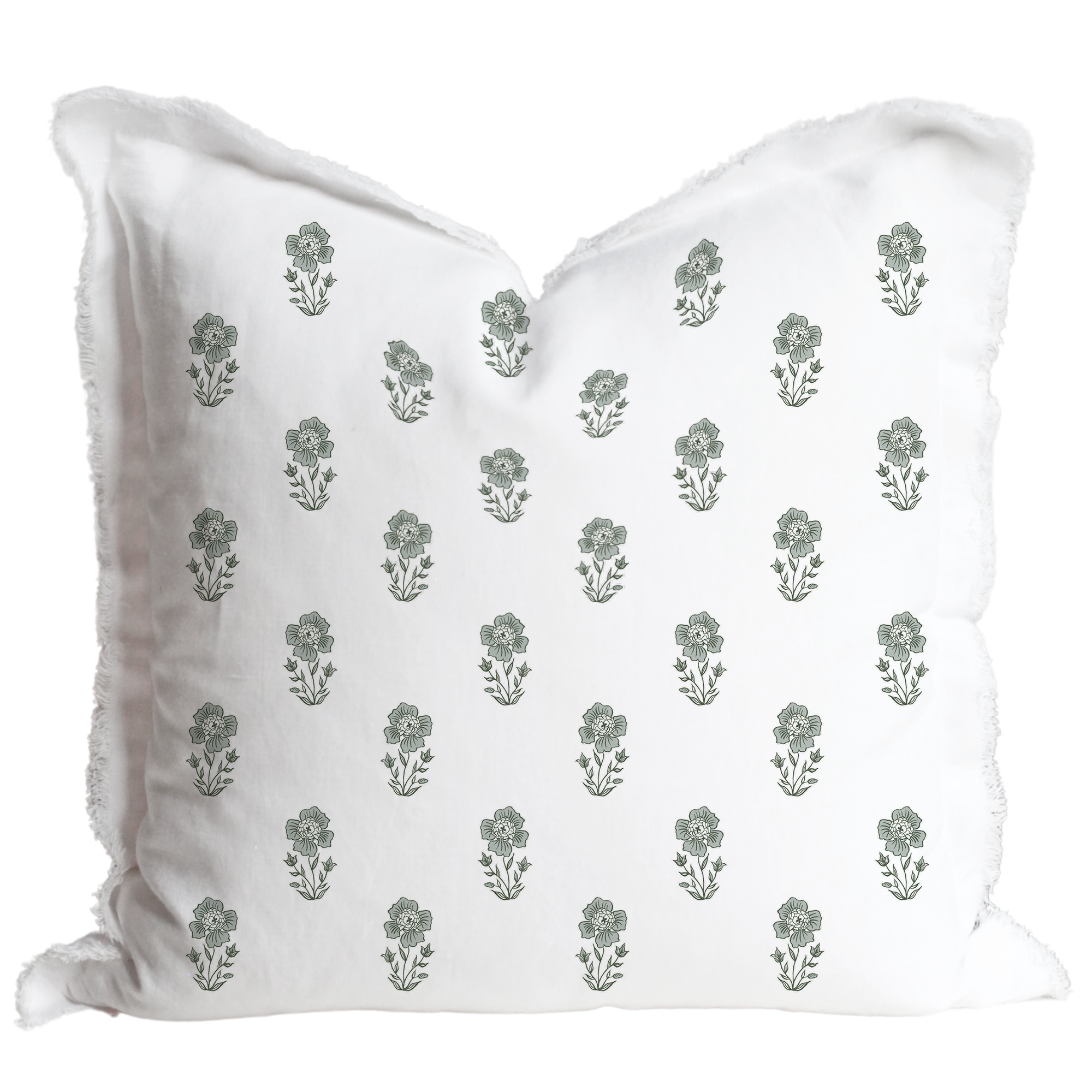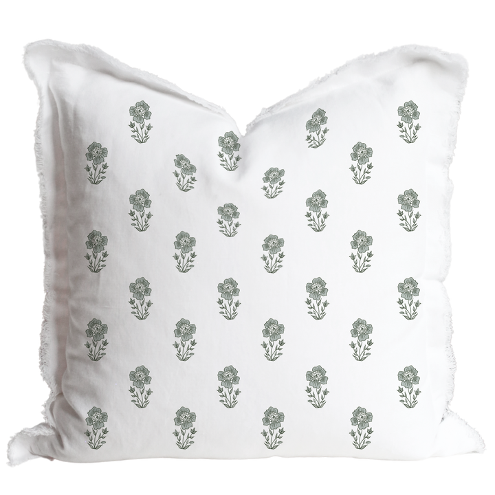 20"x20" - Featuring a delicate floral print on our signature fringe pillow cover for a touch of texture and sophistication. Made from a durable cotton-linen blend, this cover is perfect for layering on sofas, chairs, or beds, adding warmth and refinement to your space. Its versatile design complements farmhouse, coastal, or cottage-inspired interiors, making it a beautiful addition to any home. Features an invisible zipper closure to easily slip over any pillow.