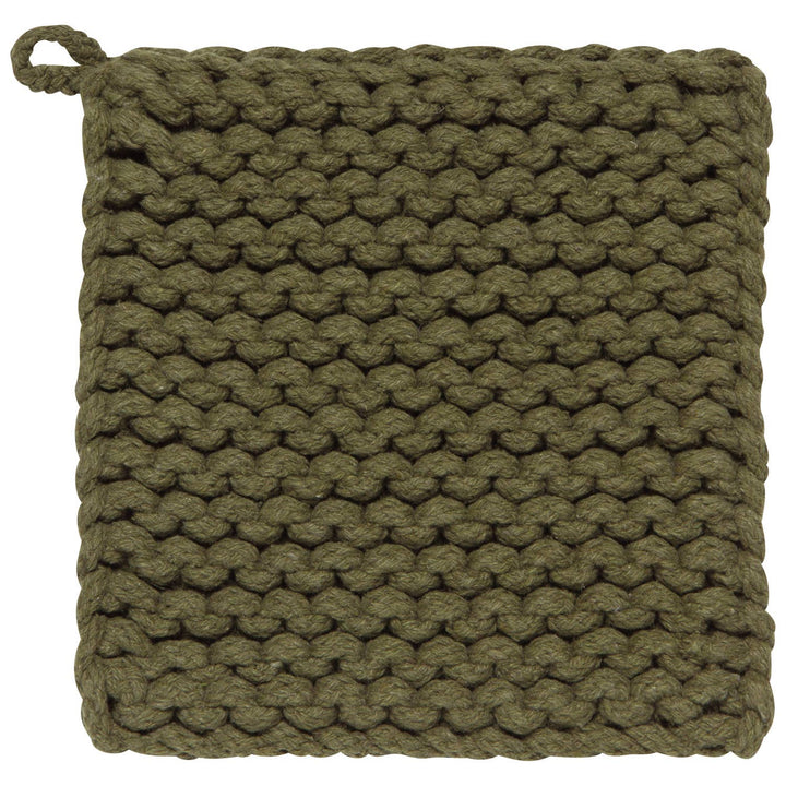 This textured potholder is made by hand in an array of appealing yarn colors. It does double duty as a trivet and adds tactile interest by the oven or on the table.