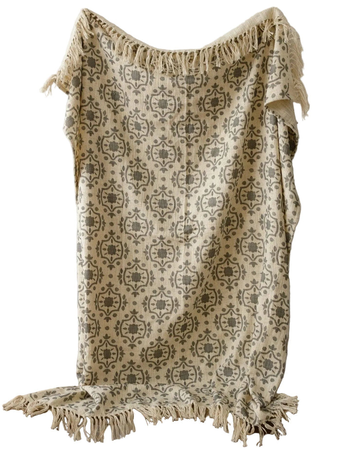 Increase quantity for Throw Blanket Cotton Gray Pattern Arabesque