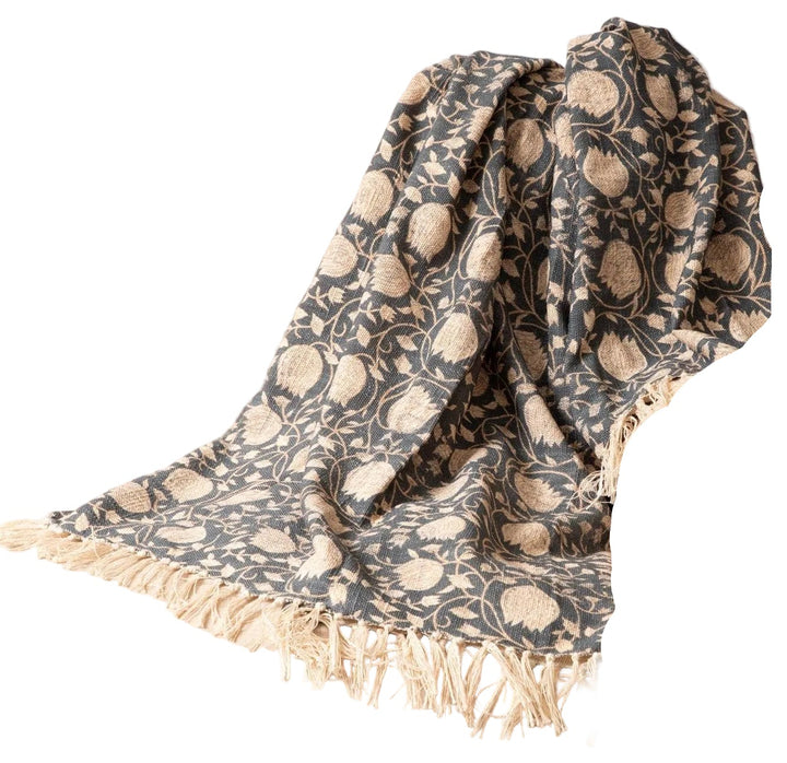 Throw Blanket Cotton Navy Block Print